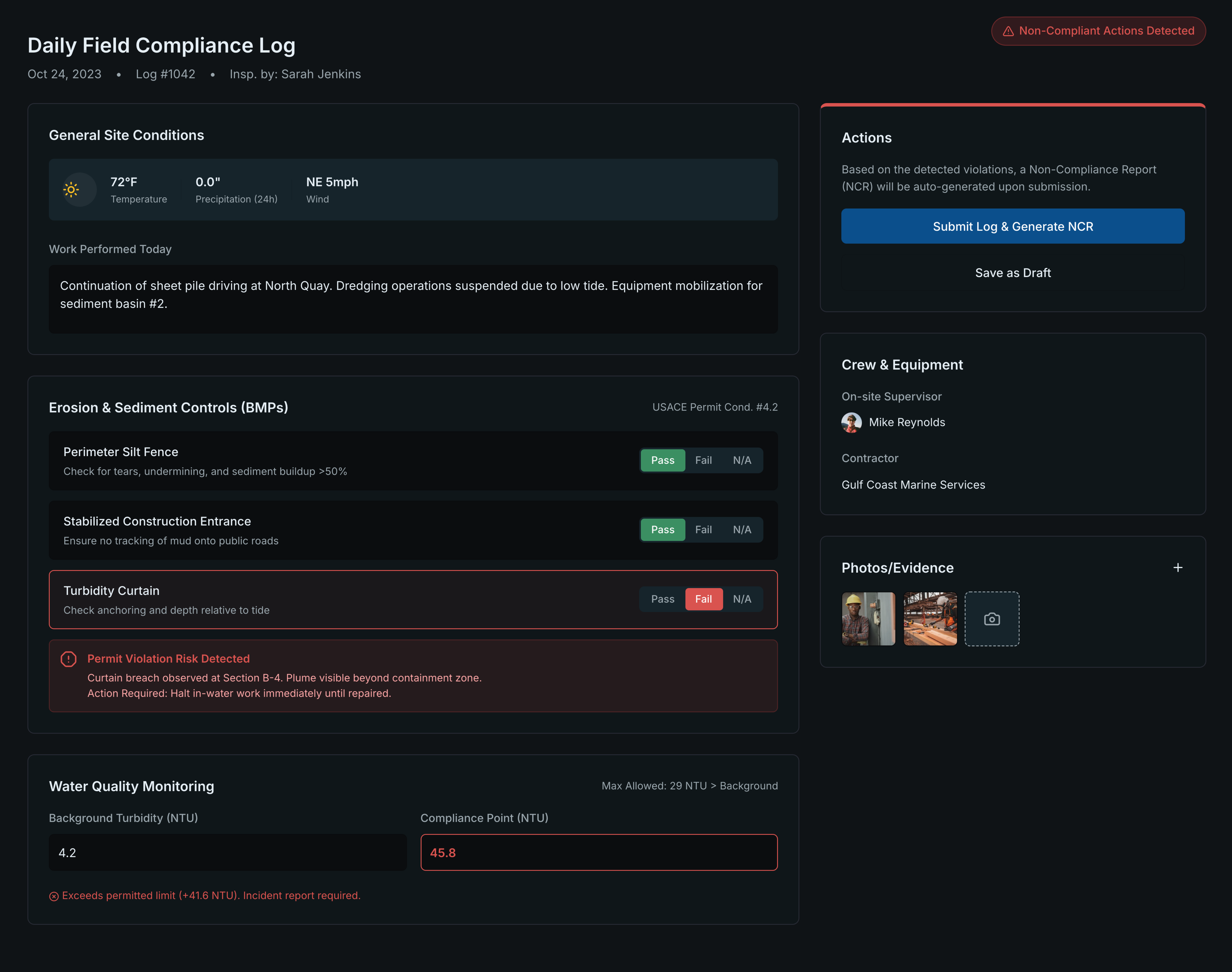 Capture auditable logs and submit with ease to prevent work stoppages and fines.
