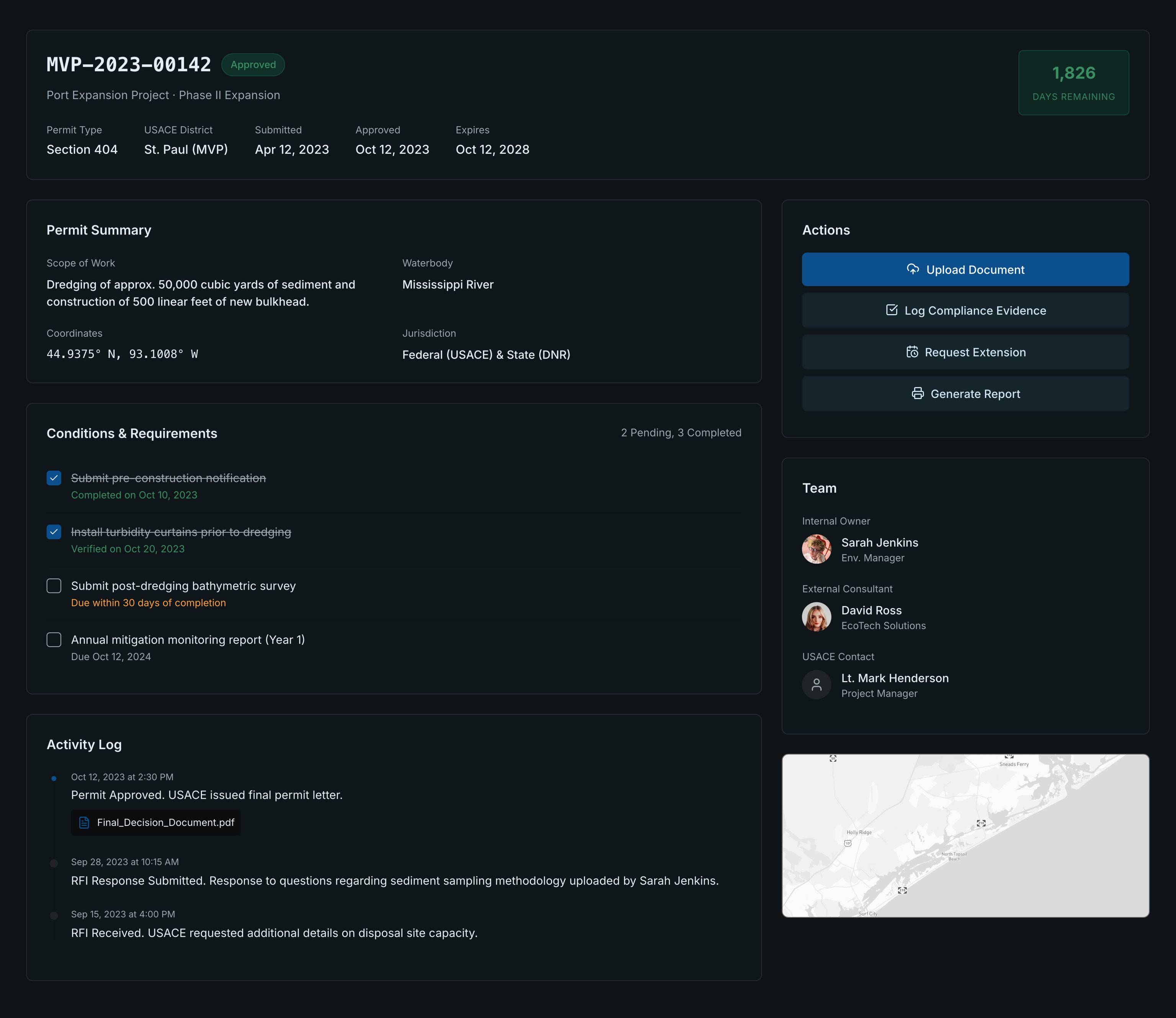 All in one platform built exclusively to projects on the water. We'll handle automating your permitting and workflows, so you can focus on what you do best: building faster, building better, and building more.